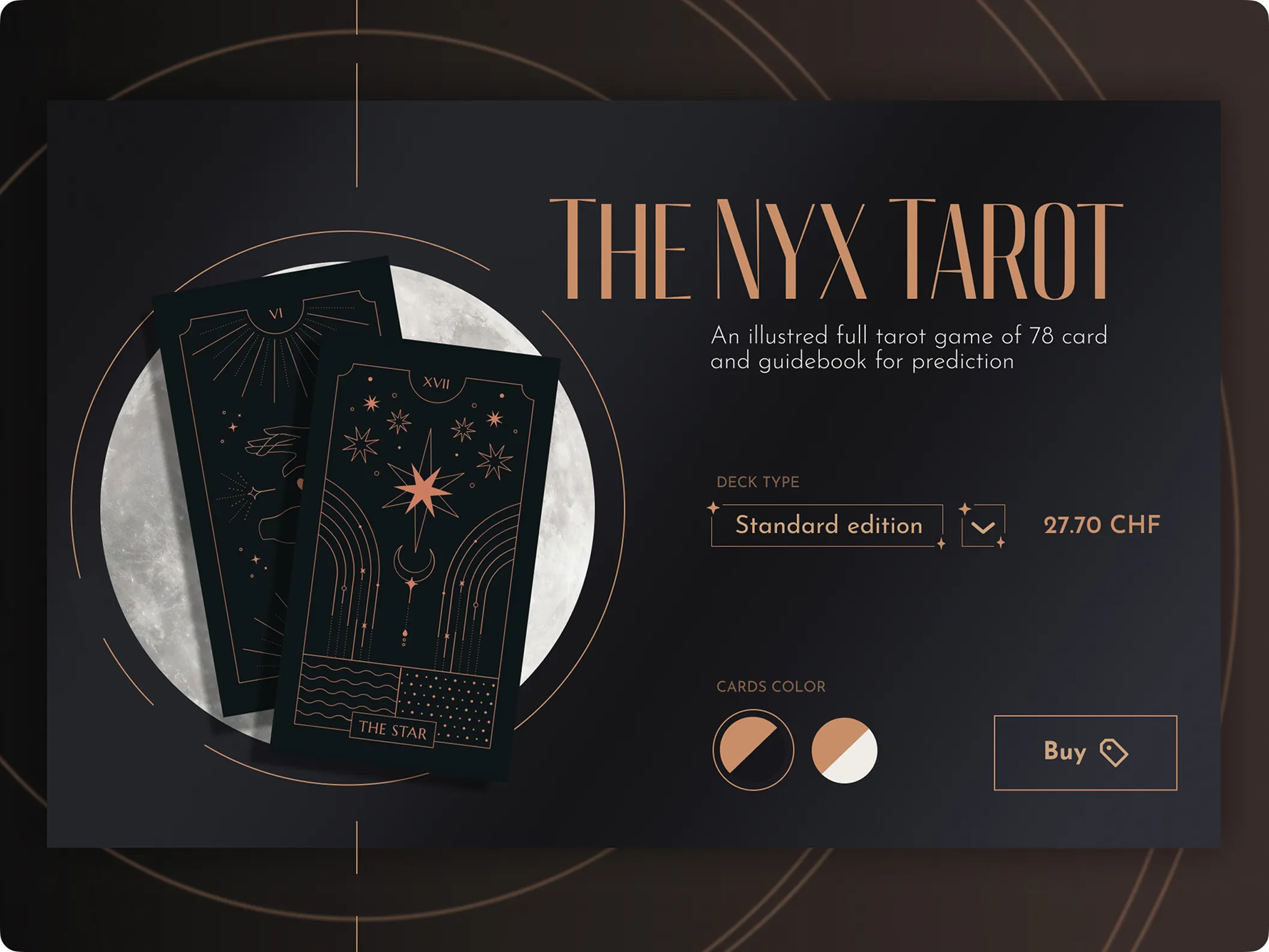 En participant au défi Daily UI, j’ai réalisé en une après-midi une page d’achat de produit. J’ai axé mon design sur la mise en valeur du produit et la création d’un univers visuel cohérent.